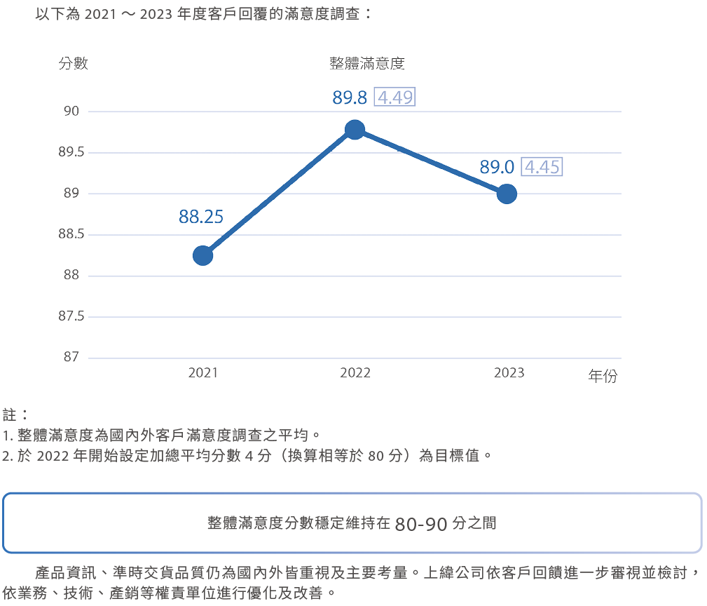 2023年滿意度調查承2022年4大指標,著重於品牌形象、產品品質、服務品質、專業知識,進而穩固並提高注重客戶處理及訊息回饋速度等各方面之計畫。