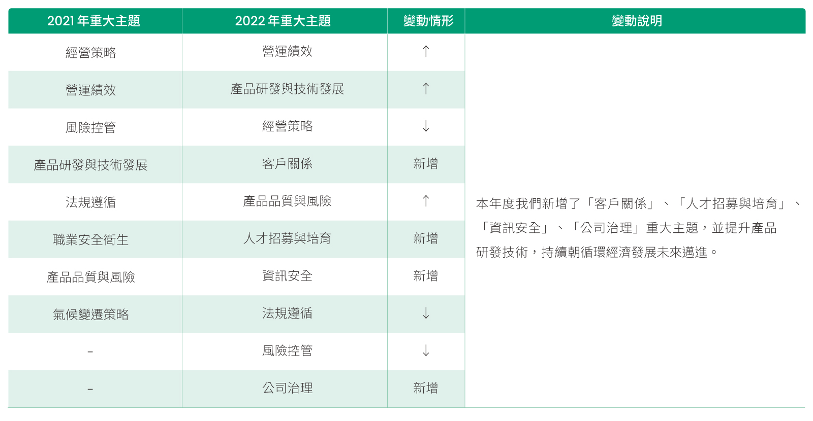2022年重大主題變動情形